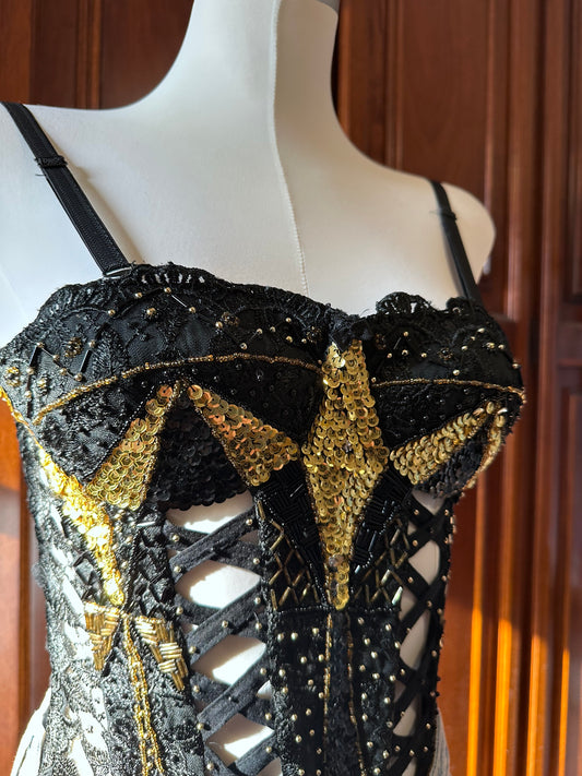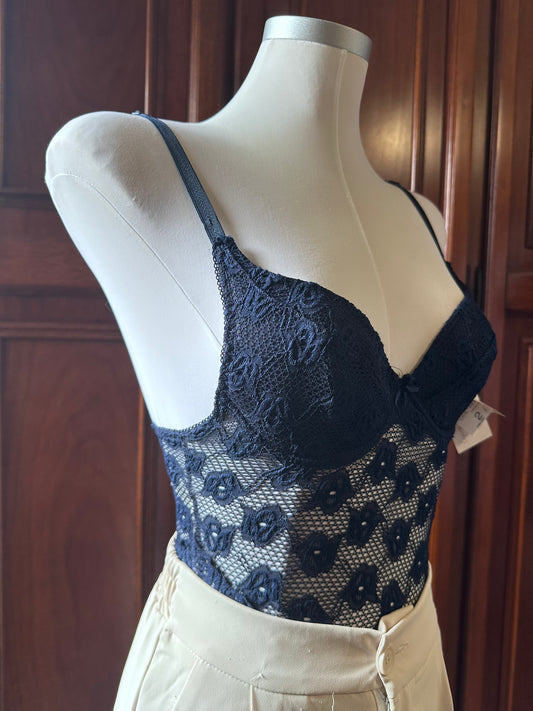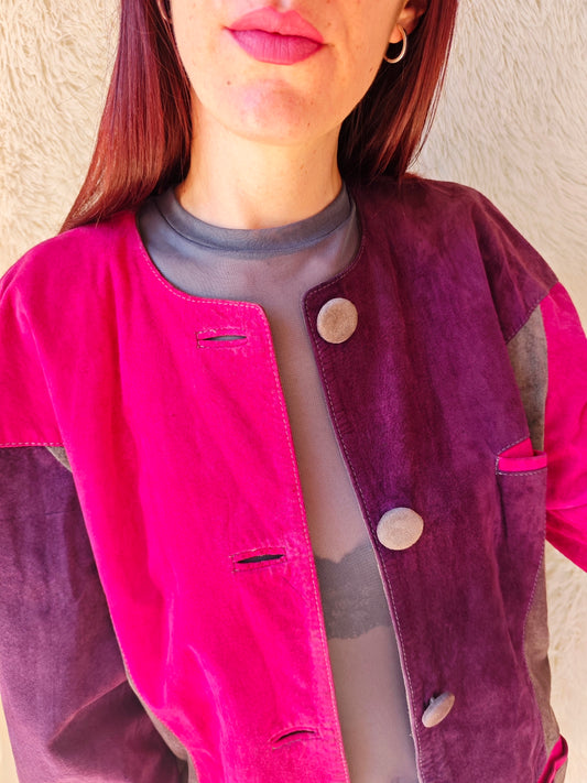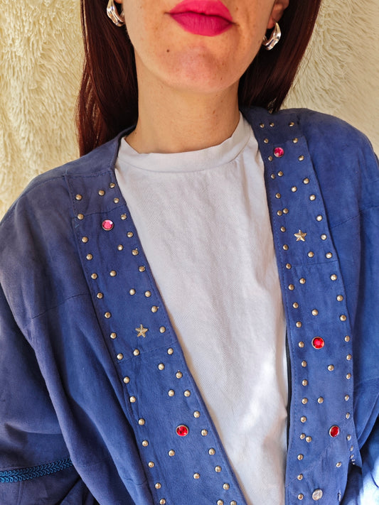 Giacca anni ‘80/’90 in camoscio blu con borchie e strass