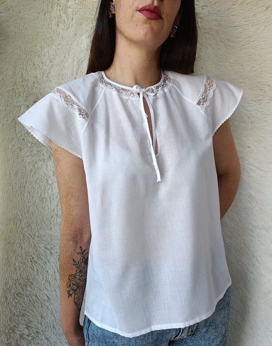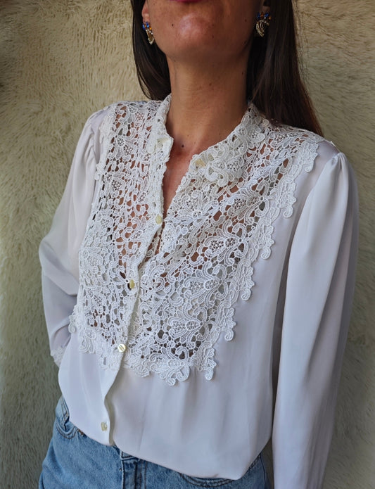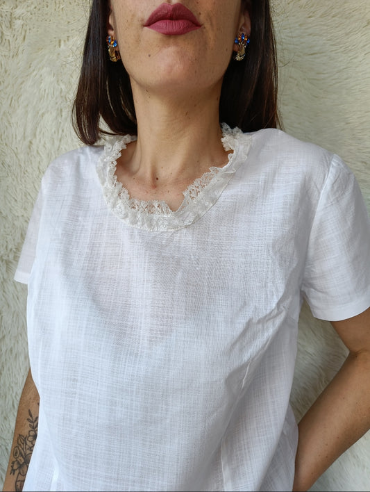 In offertaBlusa bianca con collo in pizzo