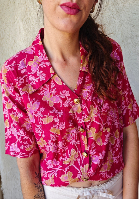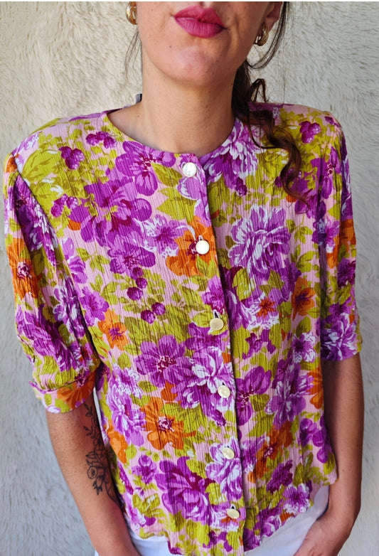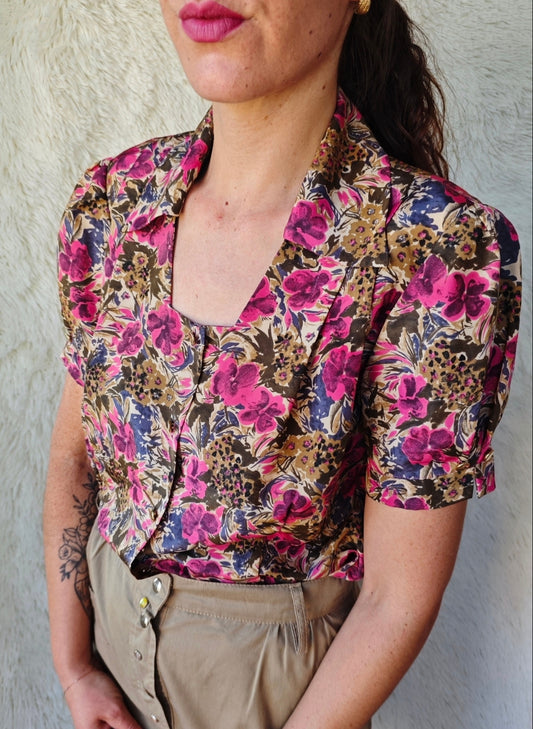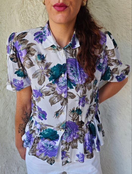 Camicia Vintage Floreale Viscosa Anni '80 con Balze