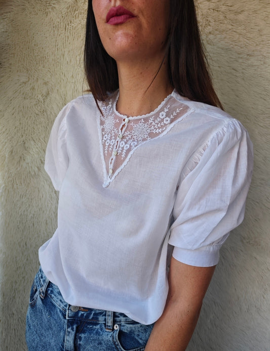 EsauritoTop ricamato in cotone anni '70