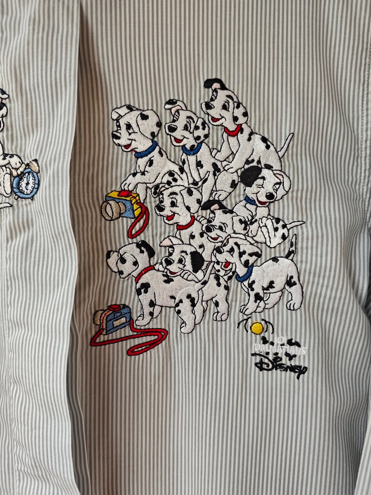 I ricami sono ricchissimi di dettagli: cuccioli in movimento con fili colorati, piccoli accessori e firma Disney ricamata sul davanti.