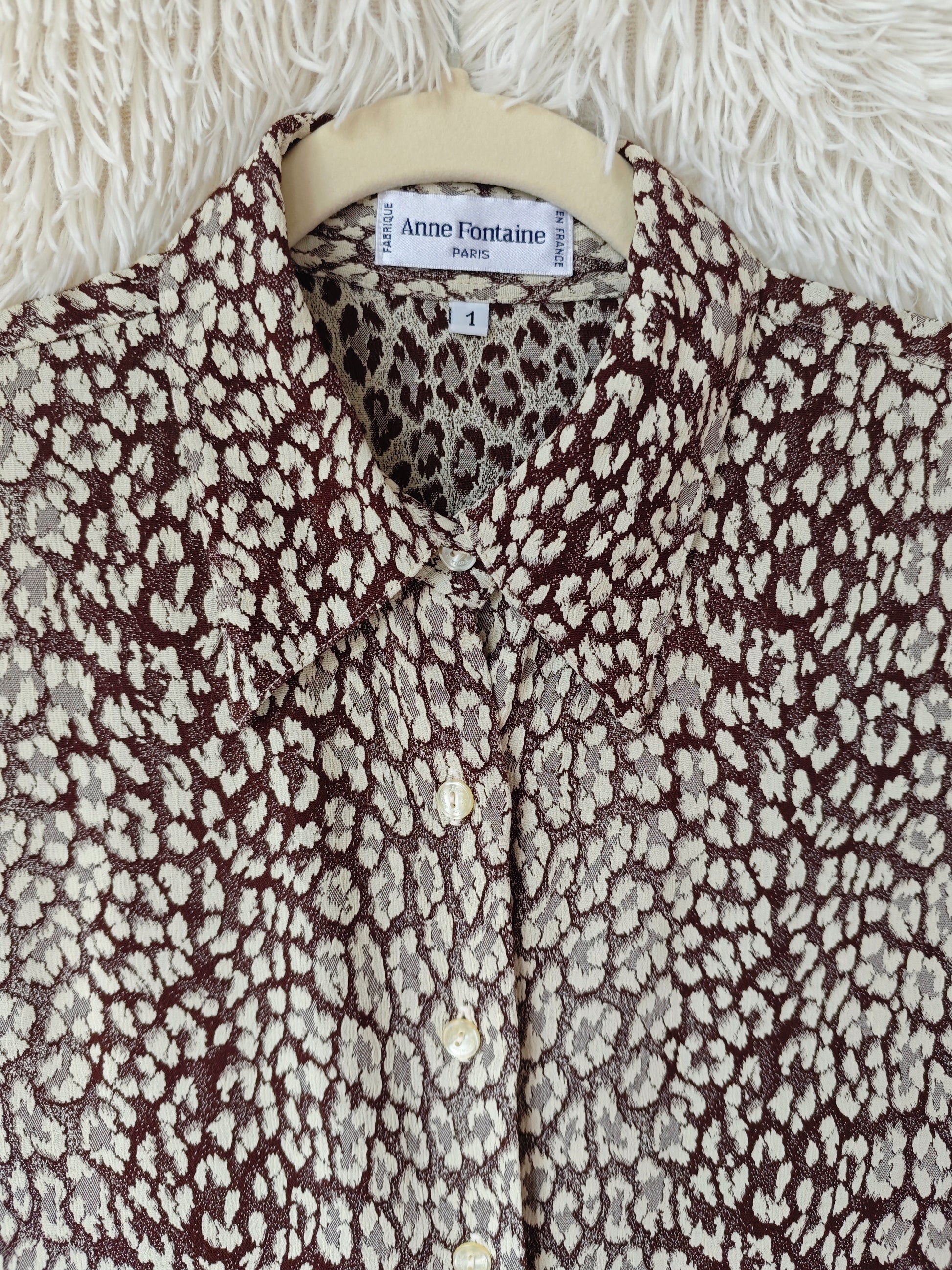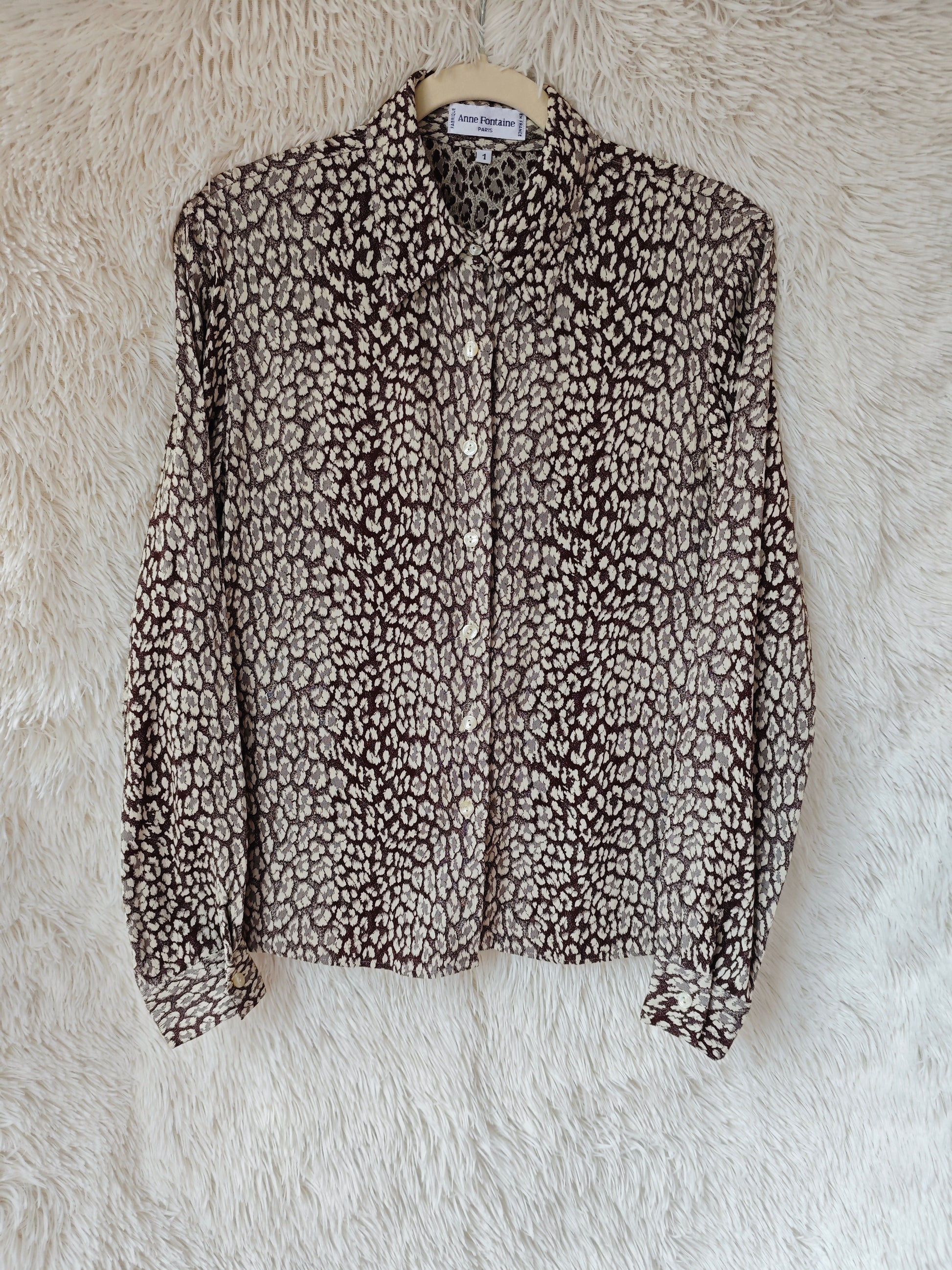 Camicia vintage con stampa animalier, realizzata in 100% viscosa .Tessuto fluido e leggero, vestibilità morbida. Leggermente sfiancata