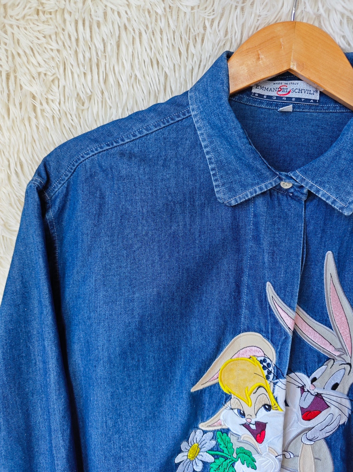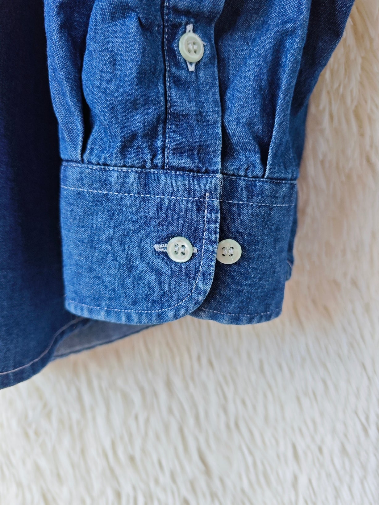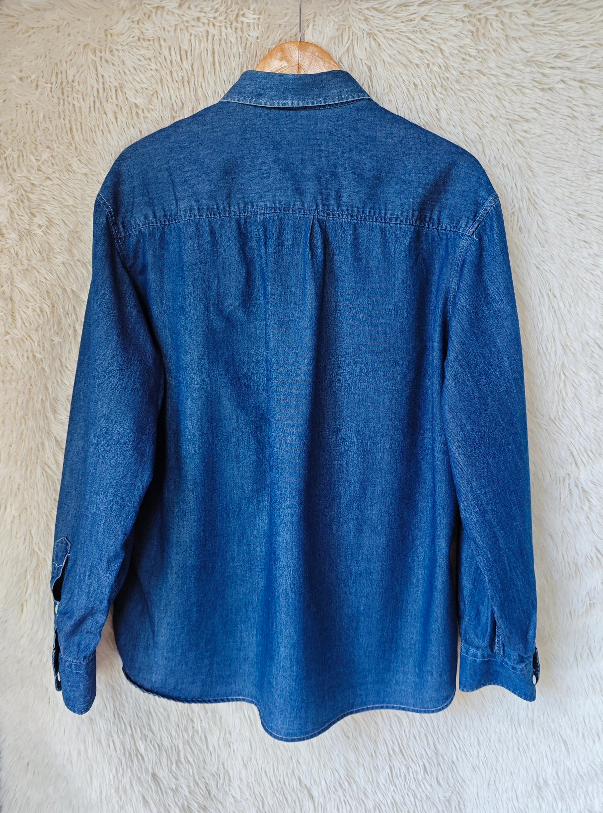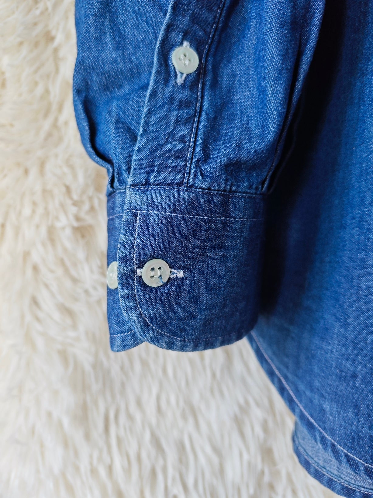 Camicia in cotone denim della collezione Segreta di Emmanuel Schvili taglio classico abbottonatura nascosta.