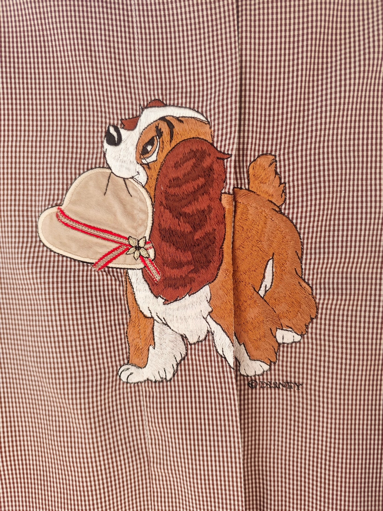 Ricamo frontale con Lilly che tiene in bocca un cappello bavarese in camoscio.