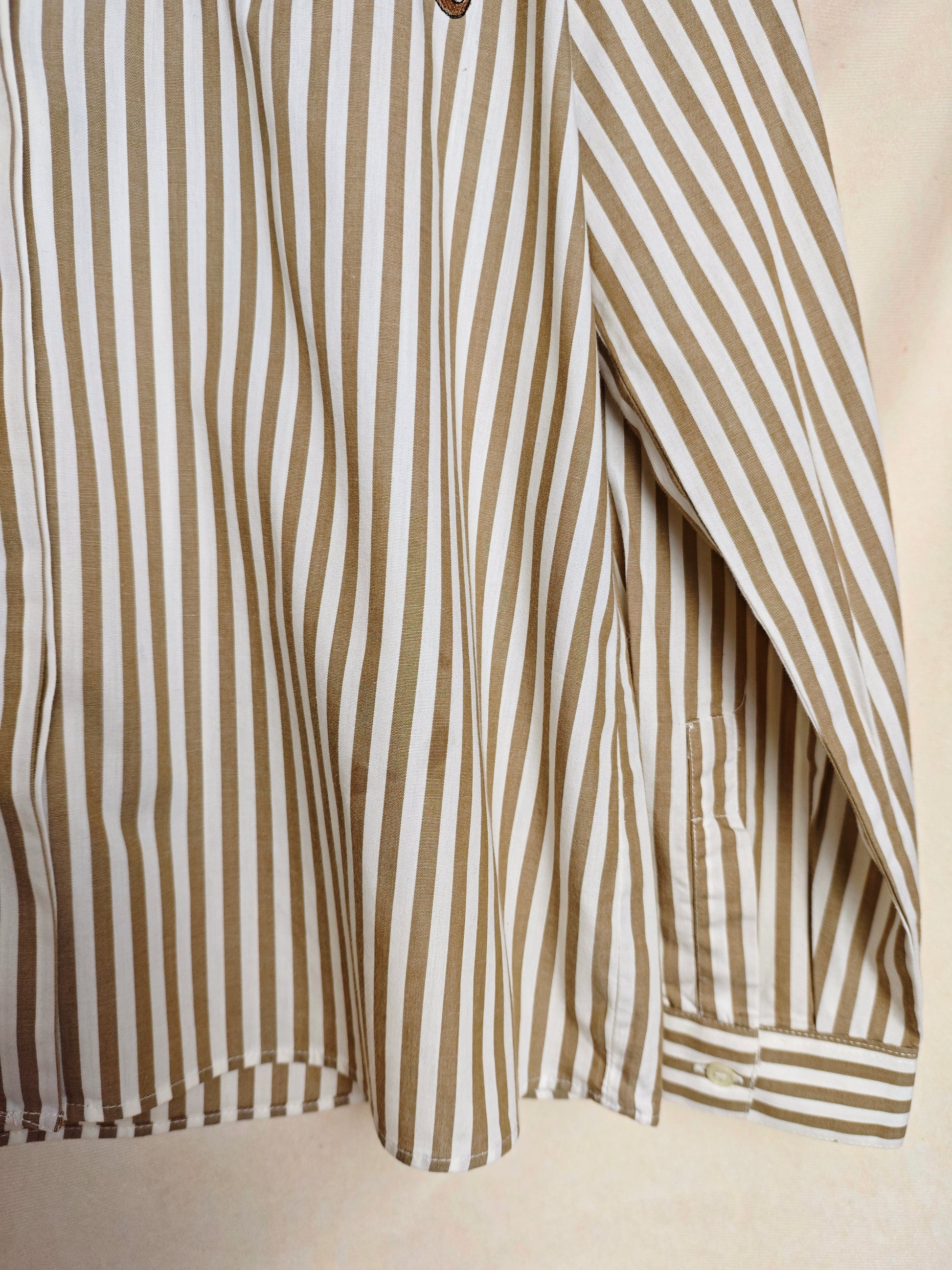 Camicia in cotone della collezione Segreta di Emmanuel schvili con fantasia a righe marroni e bianche.