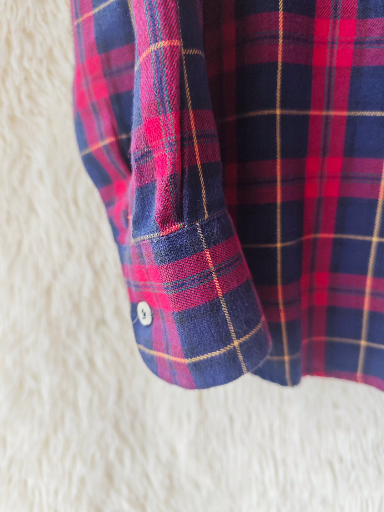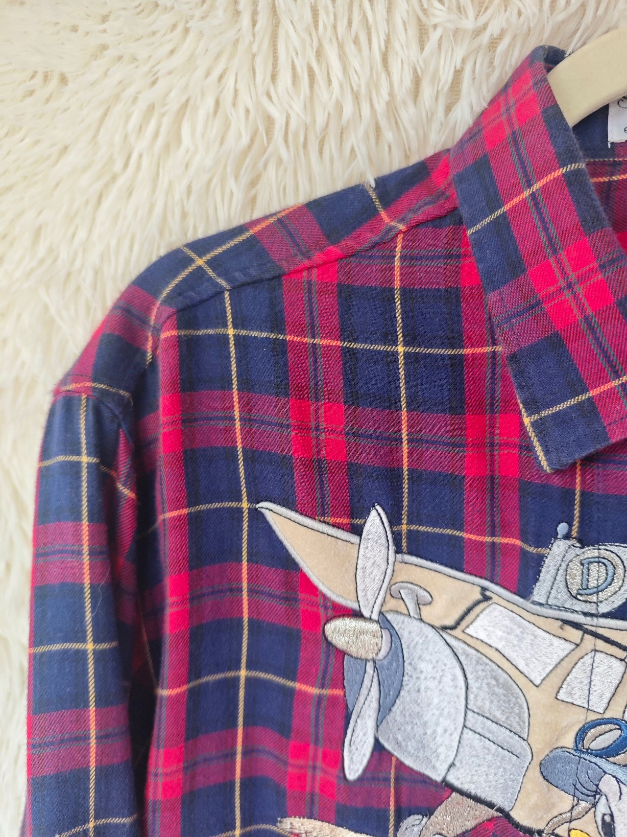 Modello a quadri tartan blu e rosso con spettacolare ricamo frontale Disney a tema aviatore.