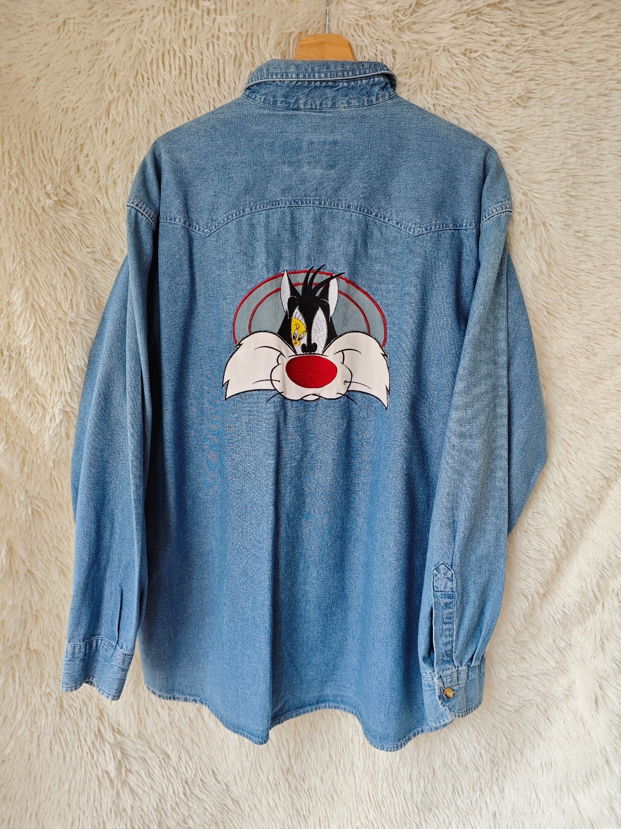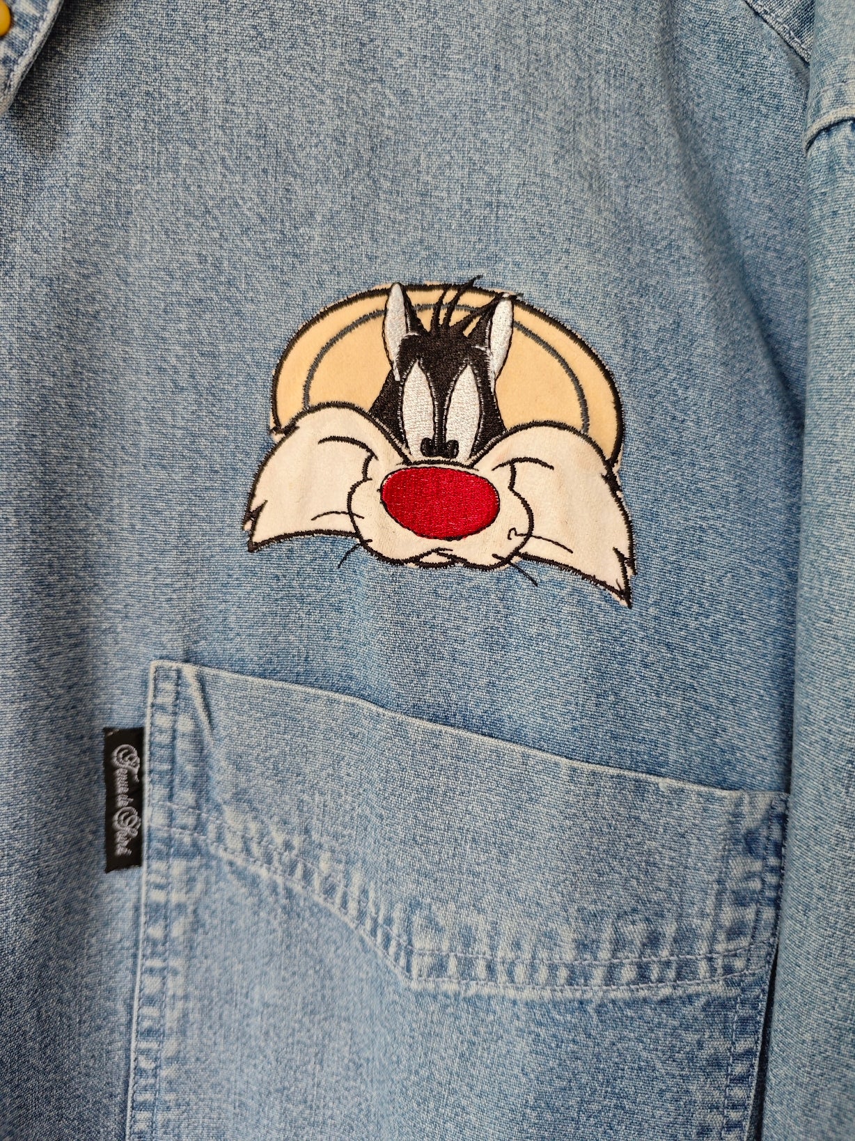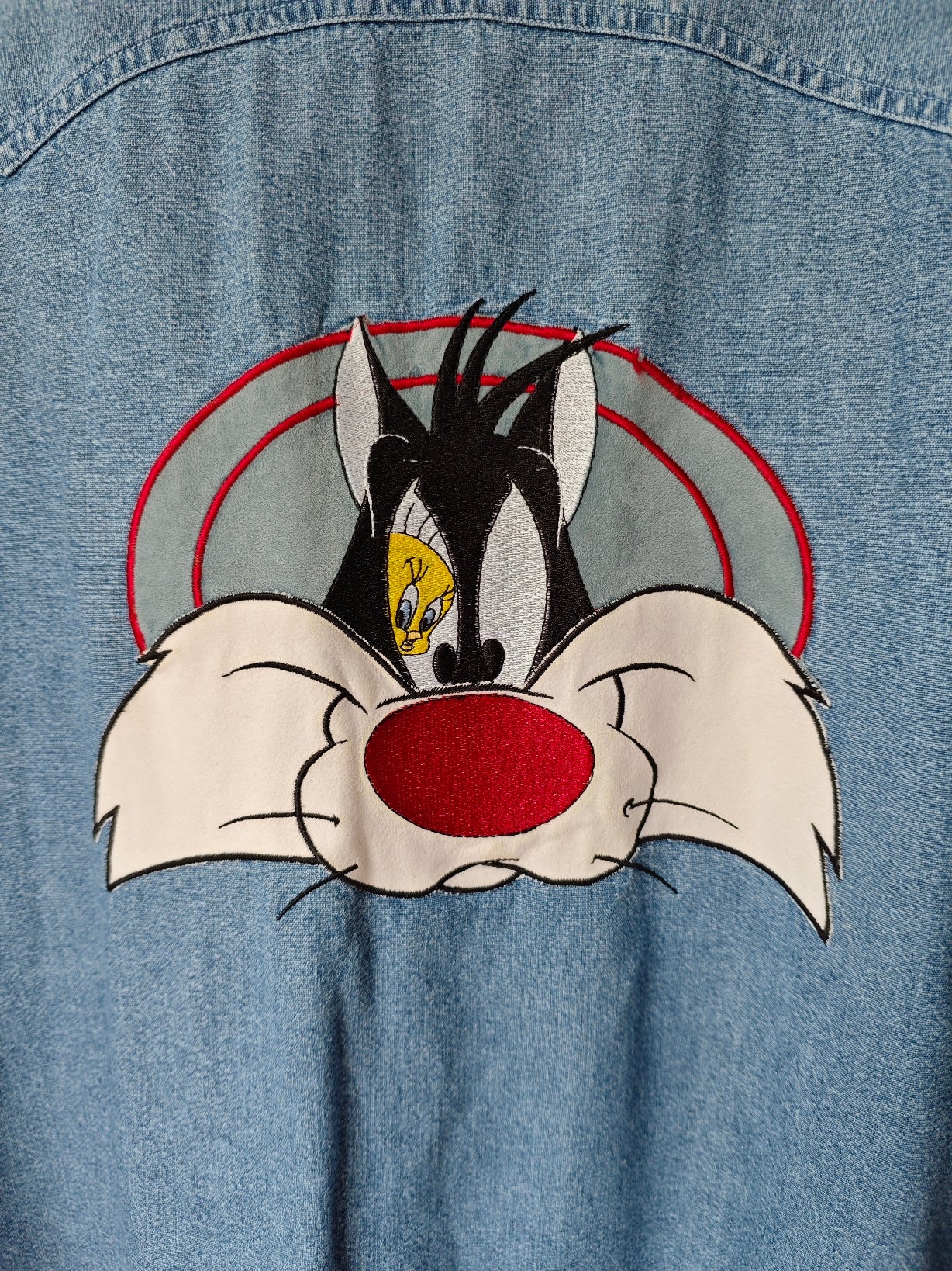 Sul davanti piccolo ricamo di Silvestro sulla tasca , dietro maxi ricamo di Silvestro e titti.