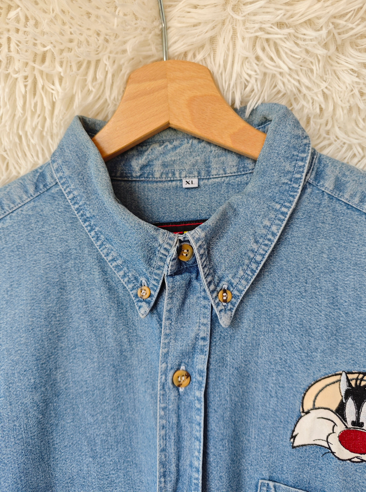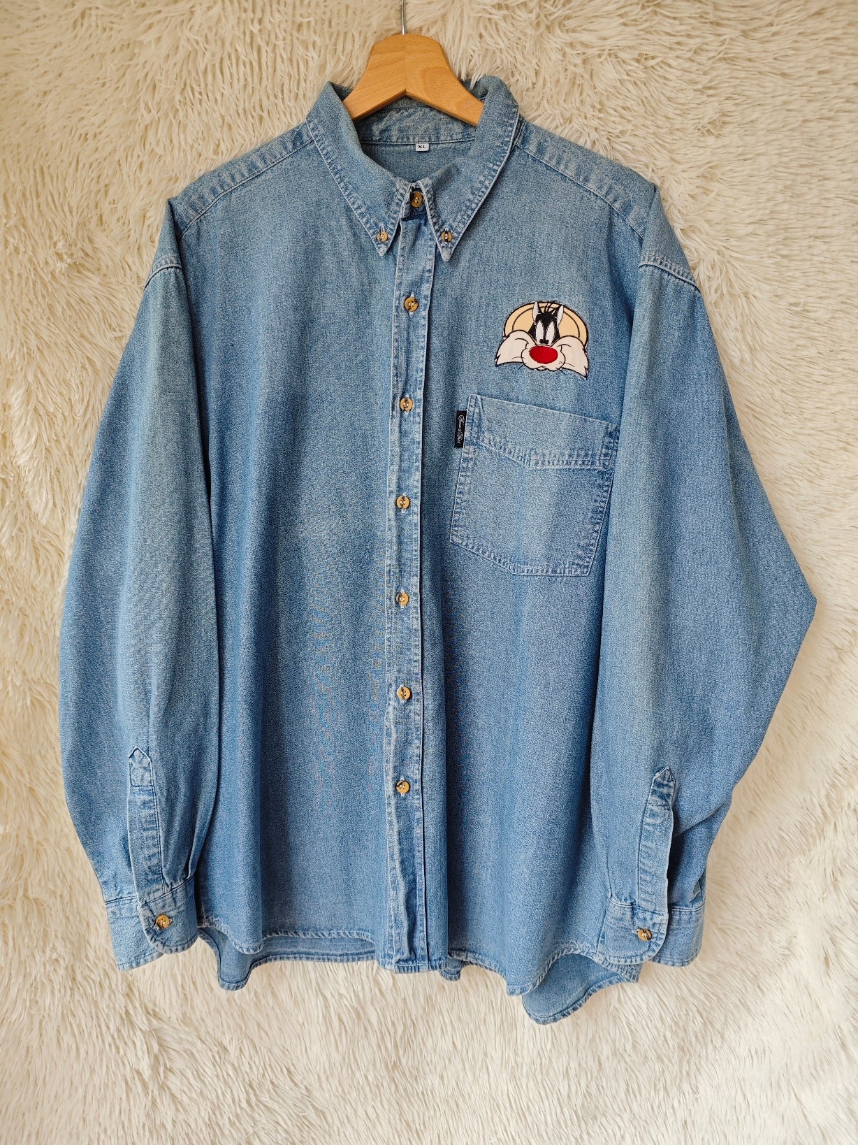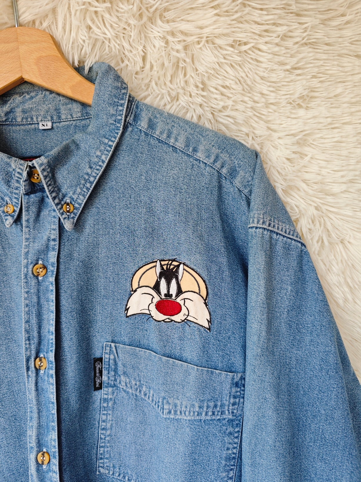 Sul davanti piccolo ricamo di Silvestro sulla tasca , dietro maxi ricamo di Silvestro e titti.