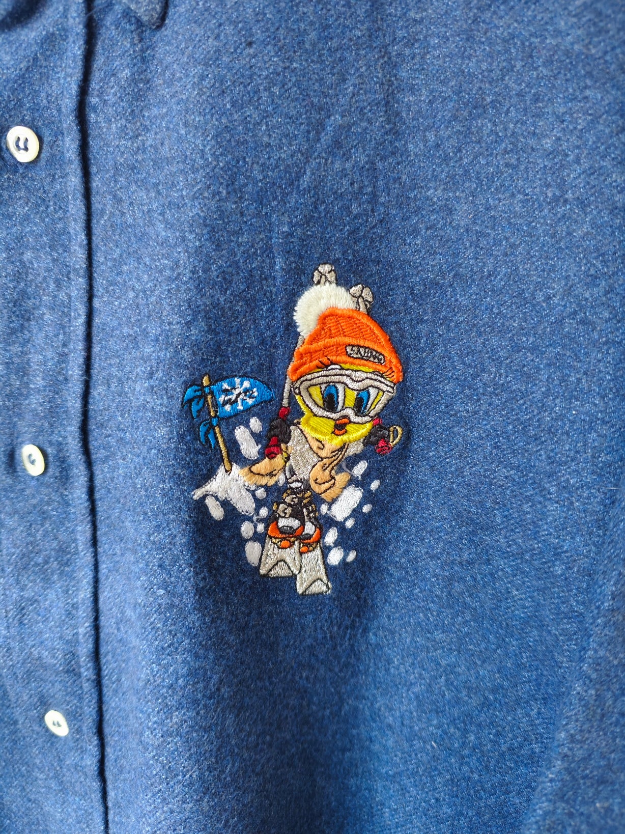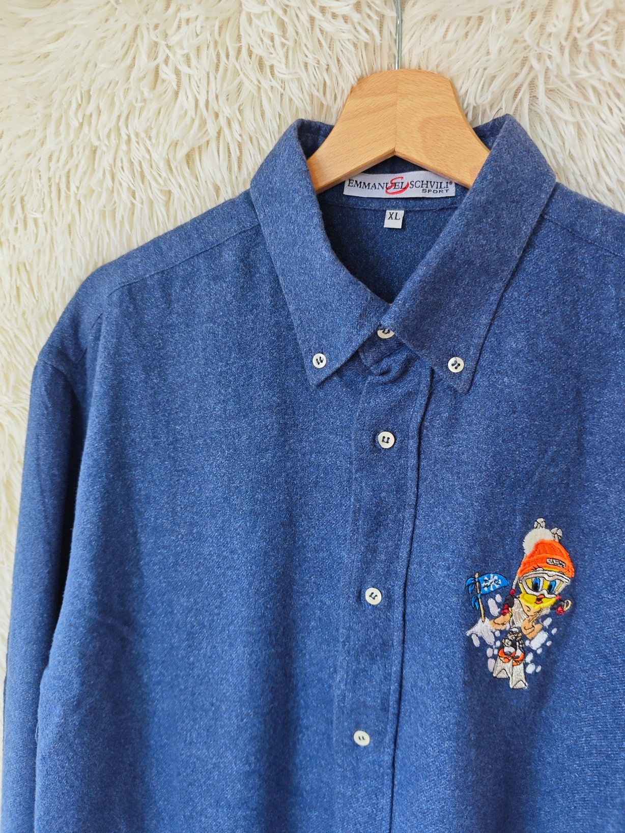 Camicia vintage looney Tunes di Emmanuel schvili in cotone flanella blu, modello maschile