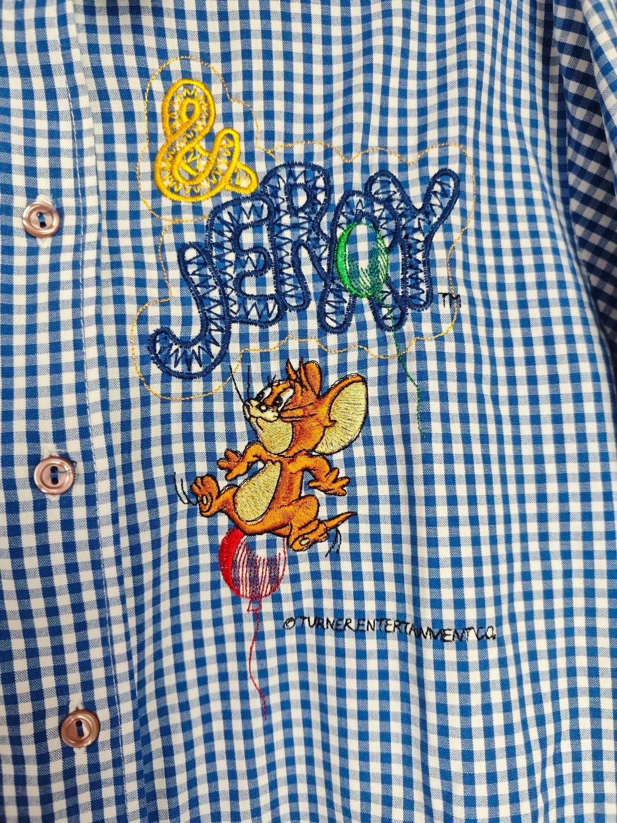 Sul davanti ricamo di Tom e Jerry che giocano con dei palloncini