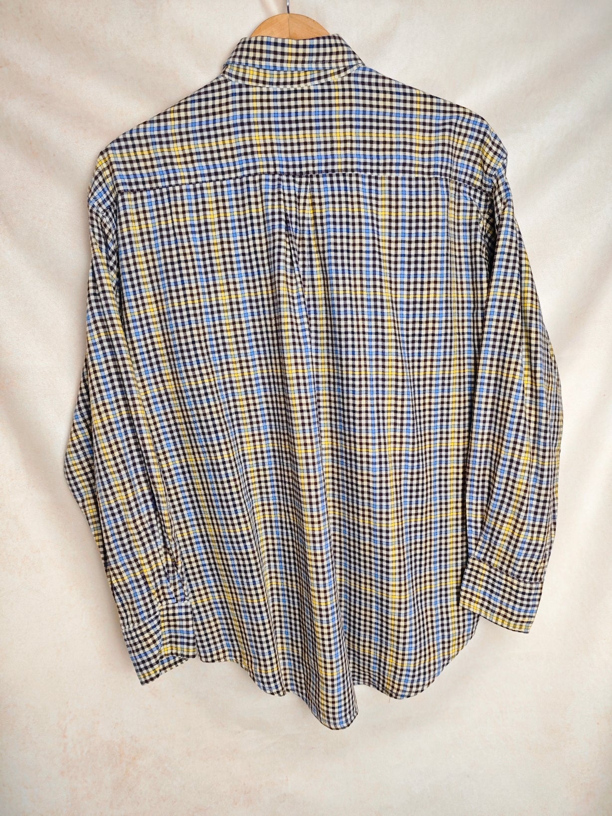 Camicia in morbido cotone leggermente felpato del brand Donaldson, con fantasia Vichy a quadretti marrone, giallo, blu e bianco.