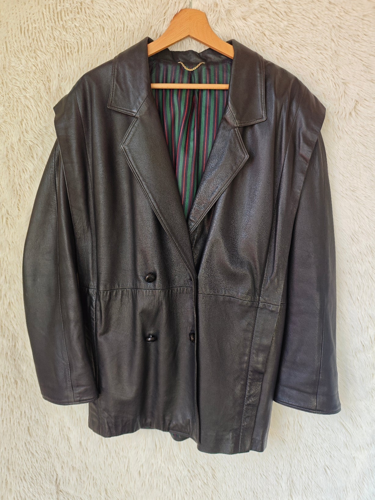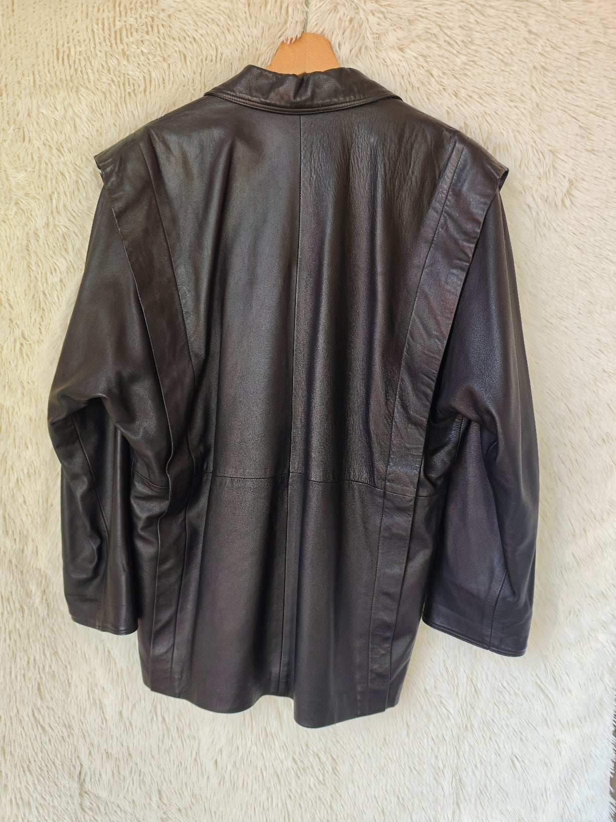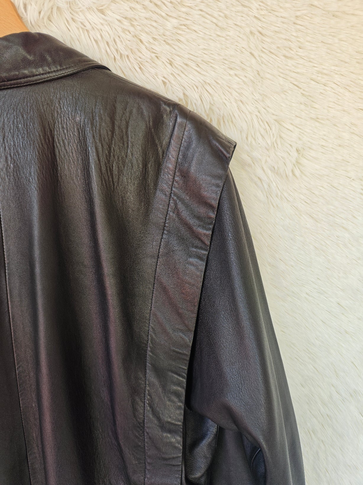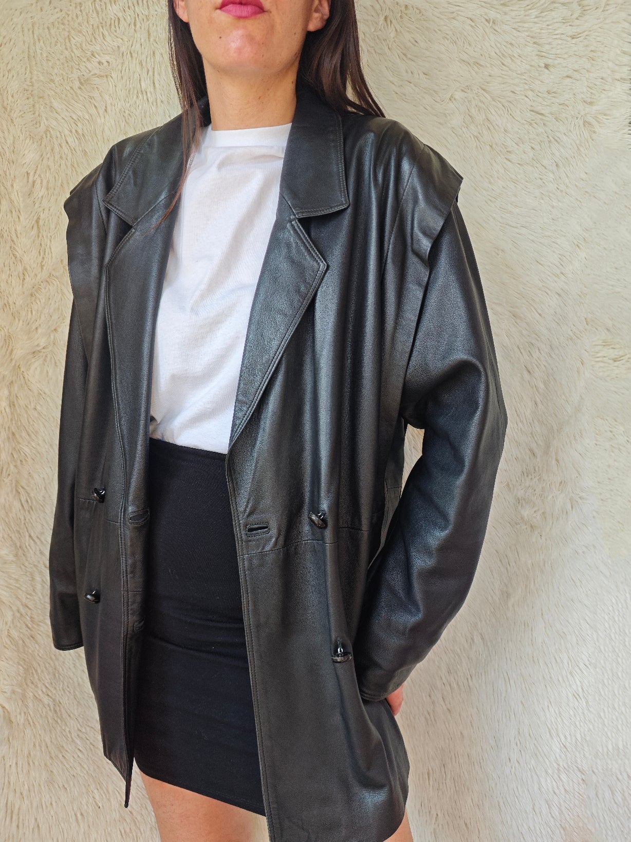 Giacca nera oversize anni ’80/’90 in vera pelle, morbidissima e di qualità eccellente.