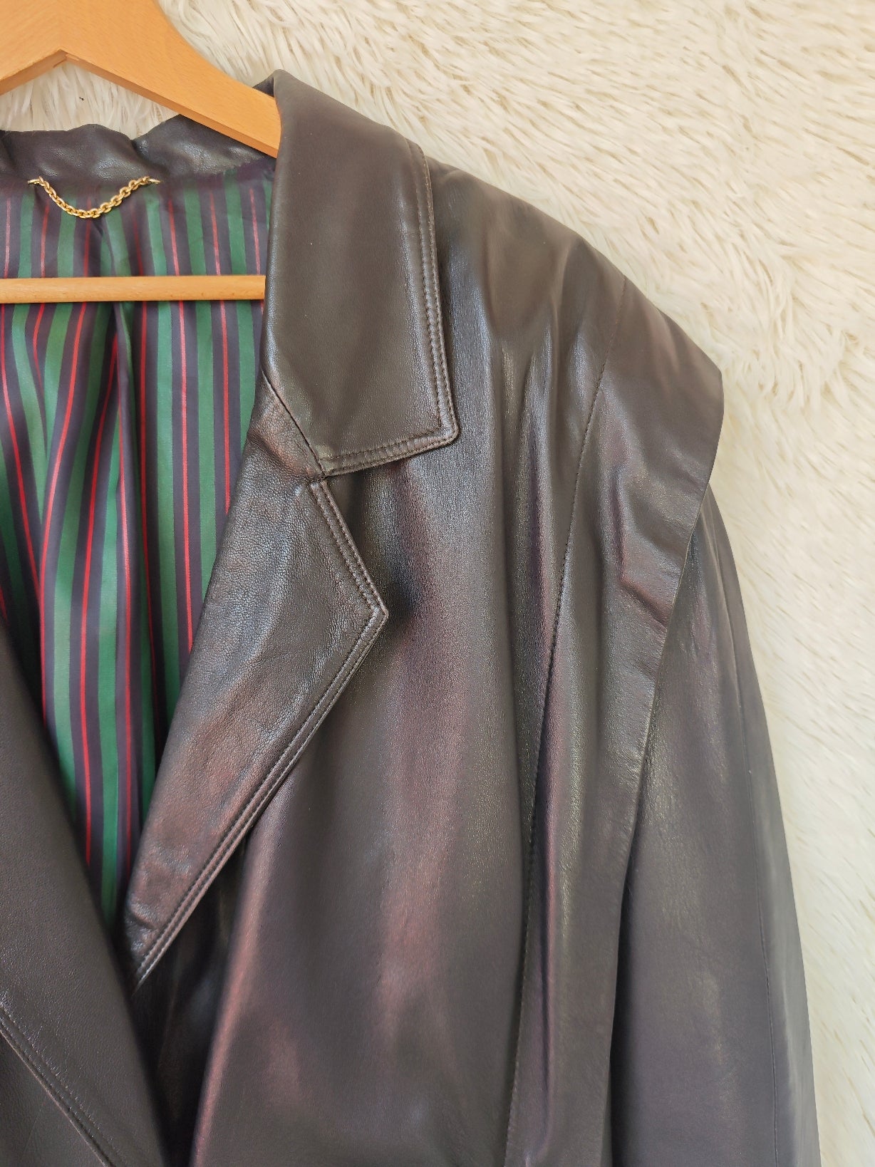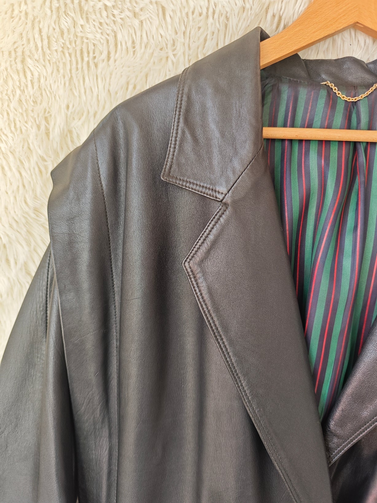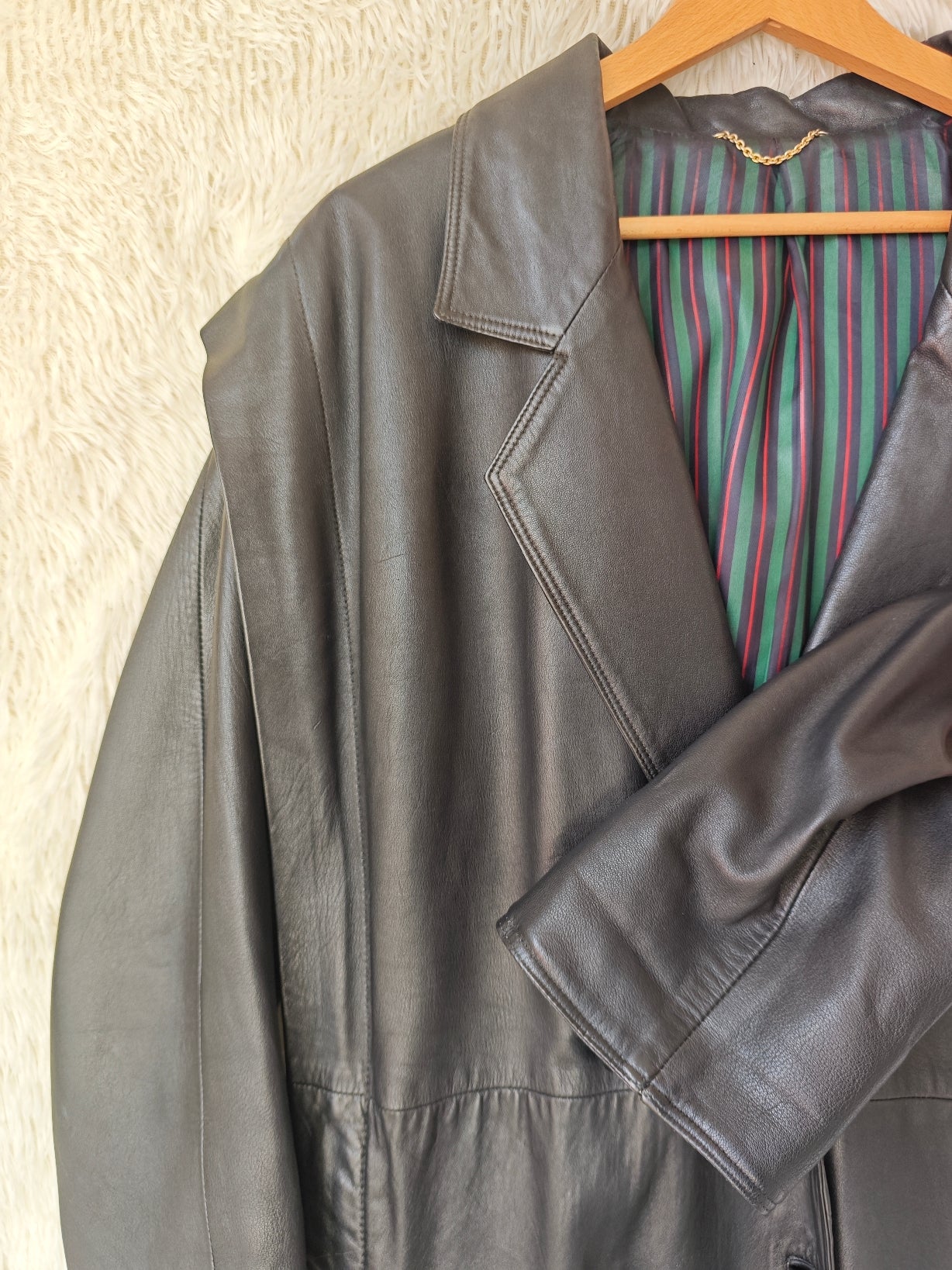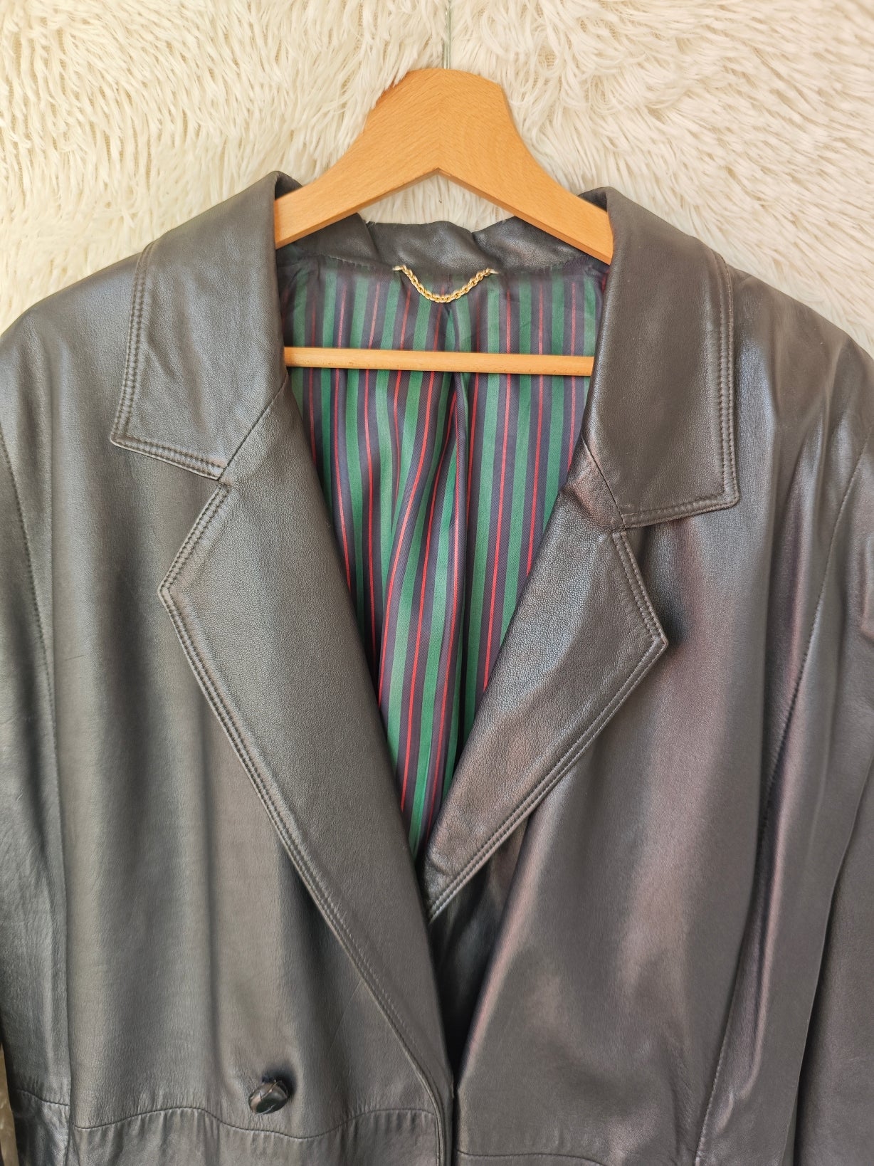 Giacca nera oversize anni ’80/’90 in vera pelle, morbidissima e di qualità eccellente.