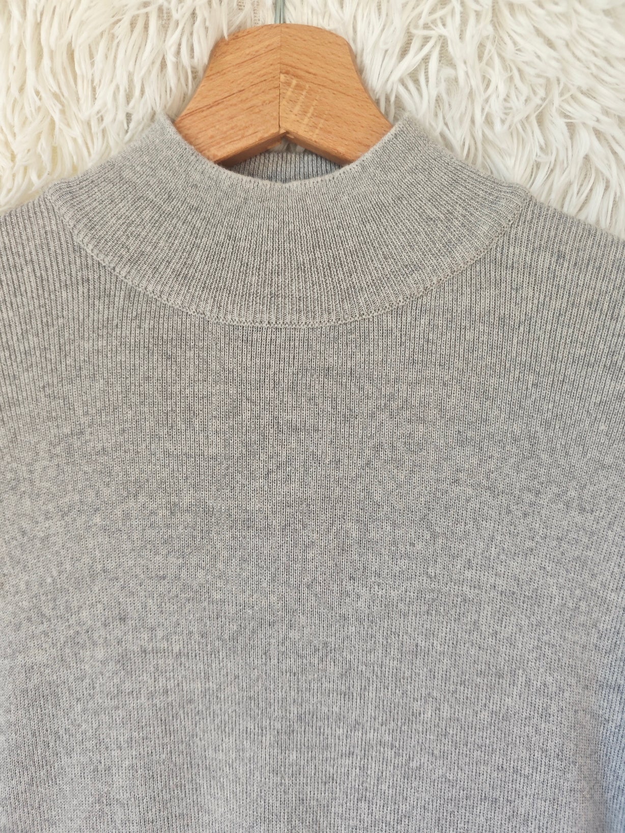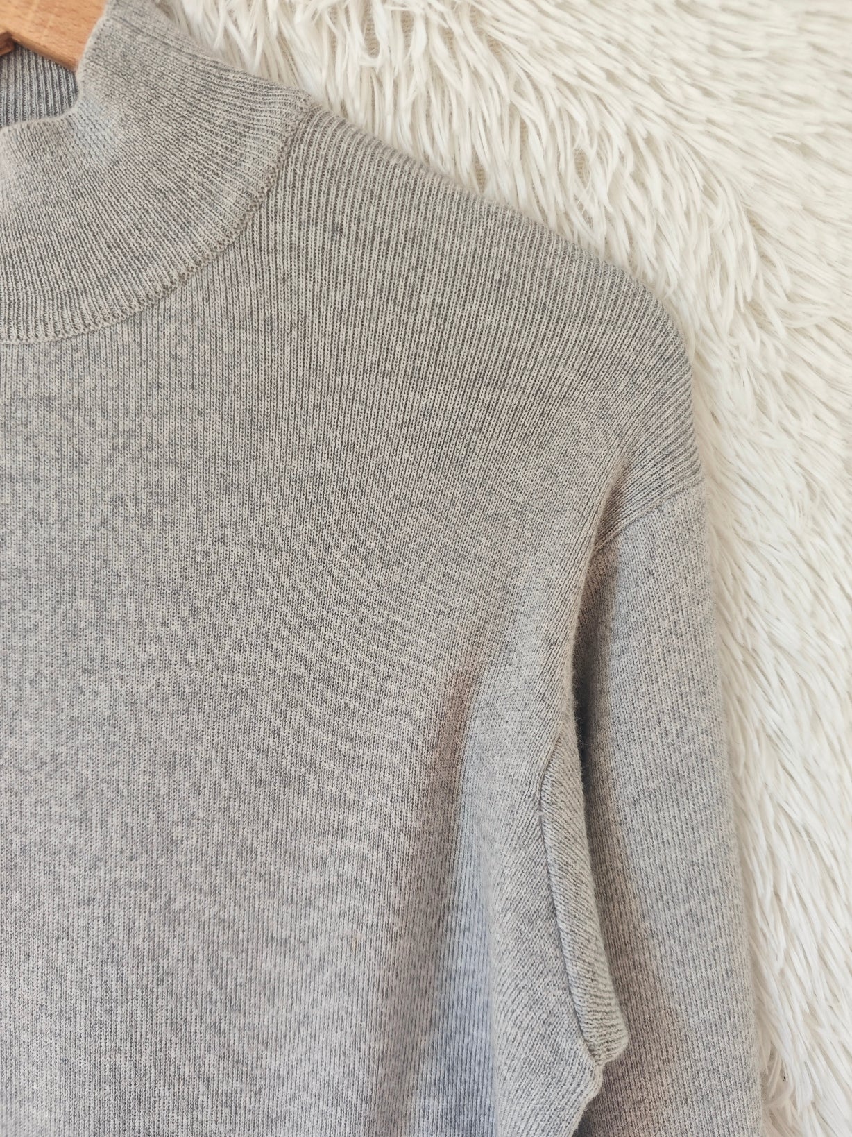 Maglione grigio mélange firmato Georgya studio, dal mood universitario, con collo alto e vestibilità morbida.