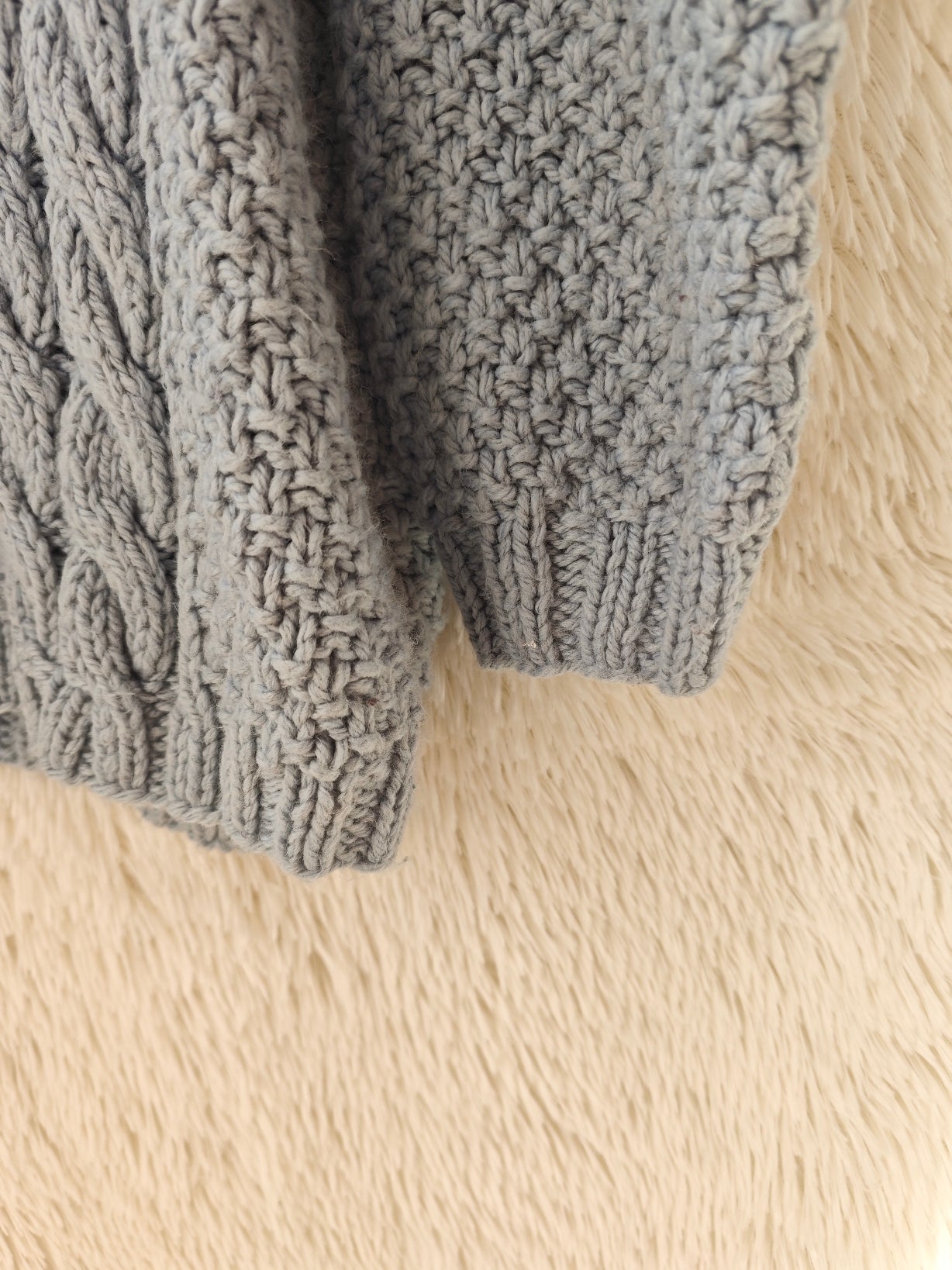 Modello a trecce lavorate a maglia grossa, dal taglio morbido e confortevole.