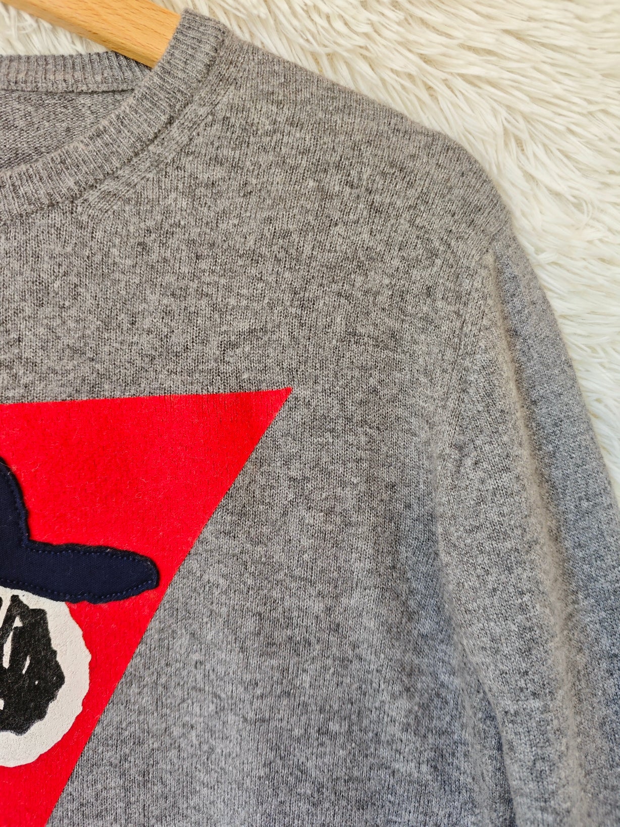 Pull girocollo Iceberg vintage grigio mélange, dal feel caldo e morbido, probabile lana. Iconica grafica frontale con Snoopy su base geometrica rossa, in perfetto stile Iceberg anni ’90/2000.