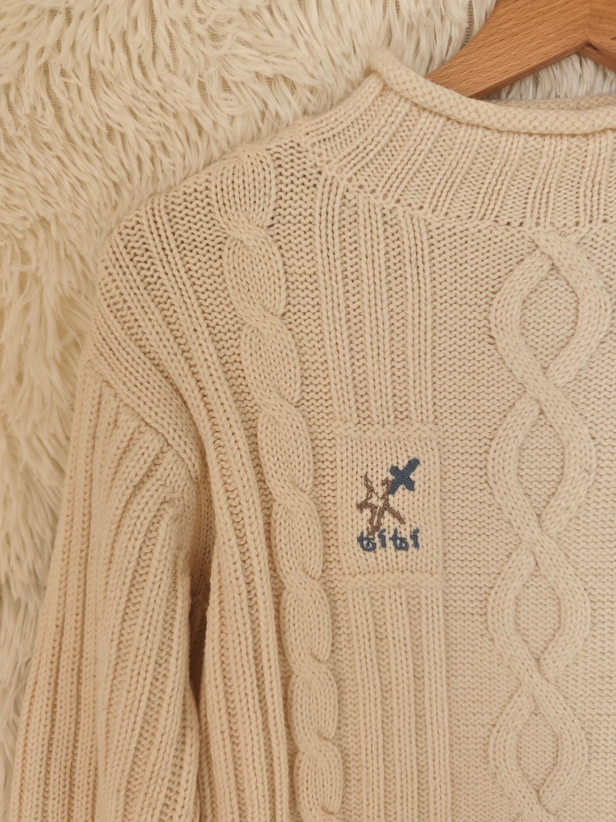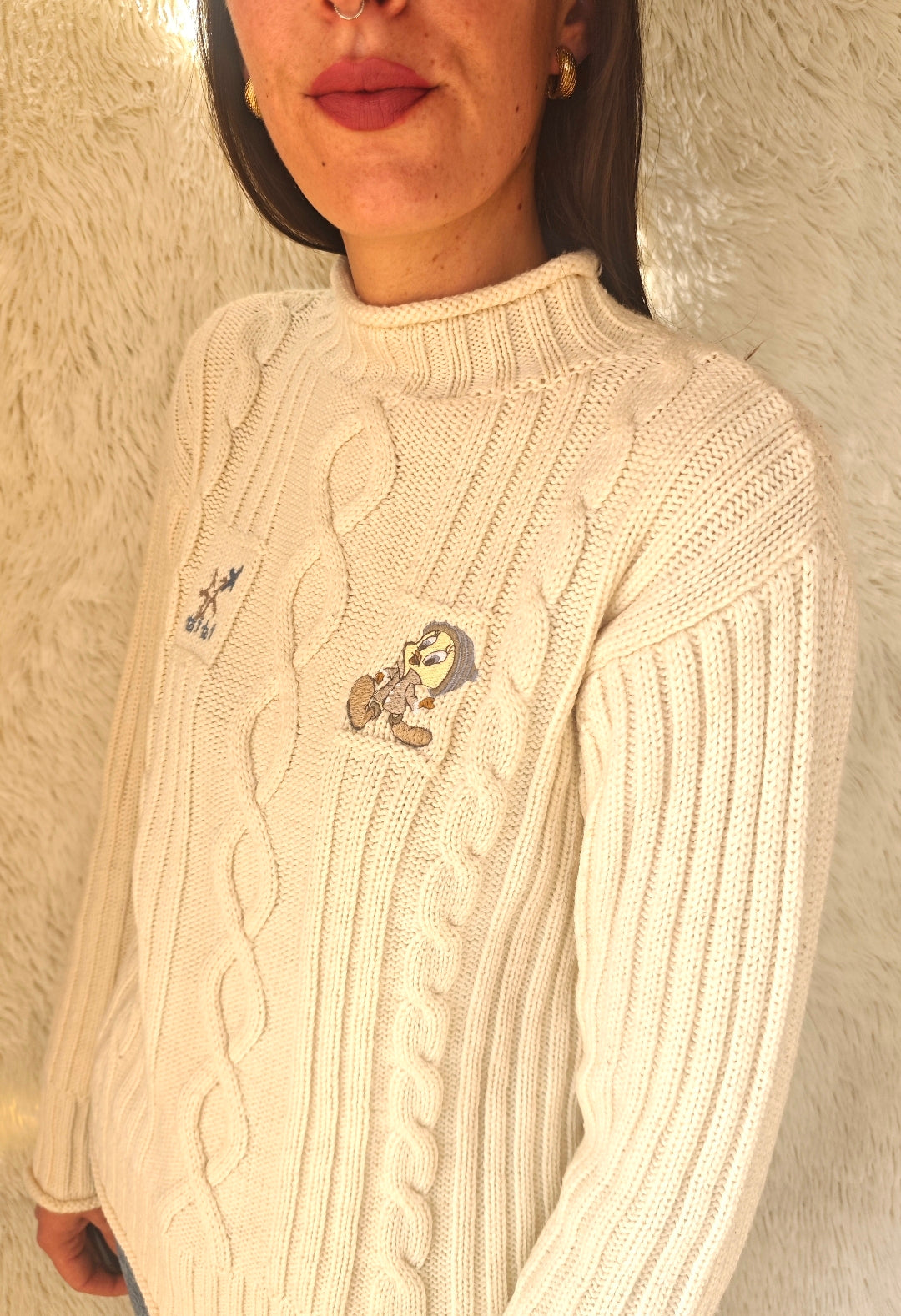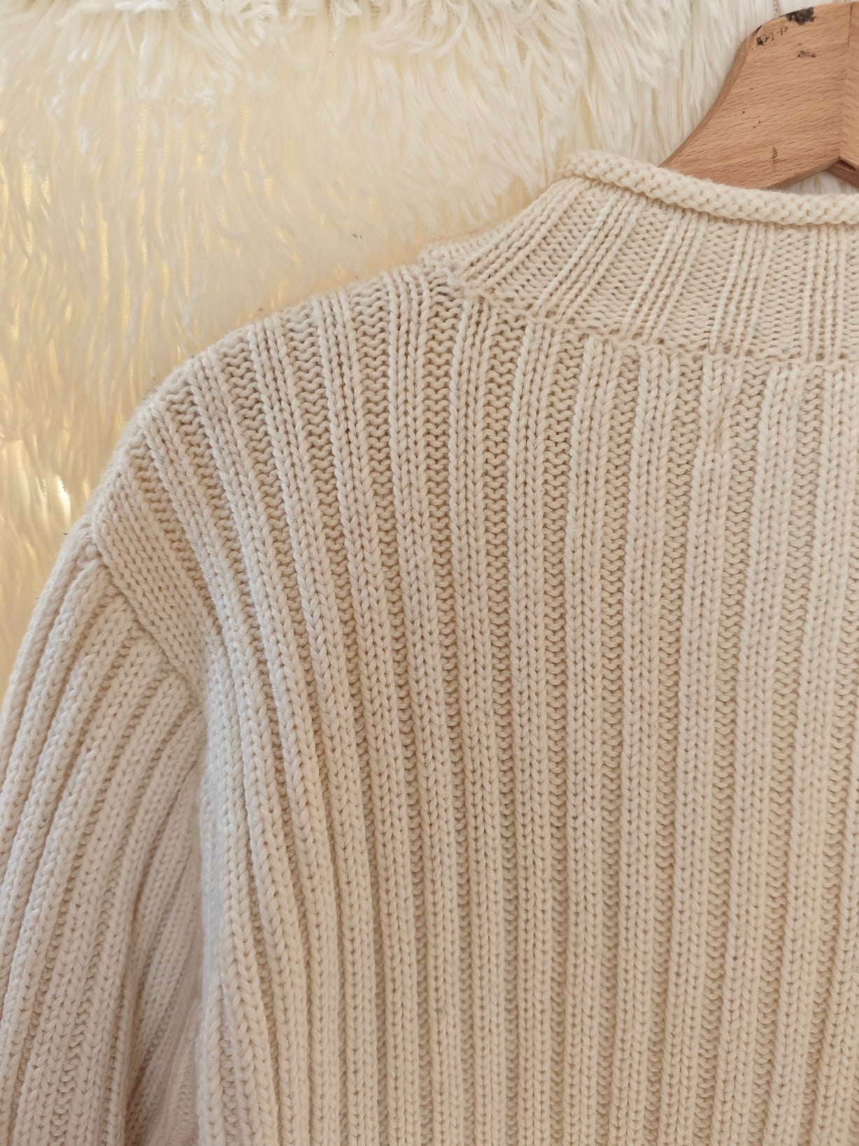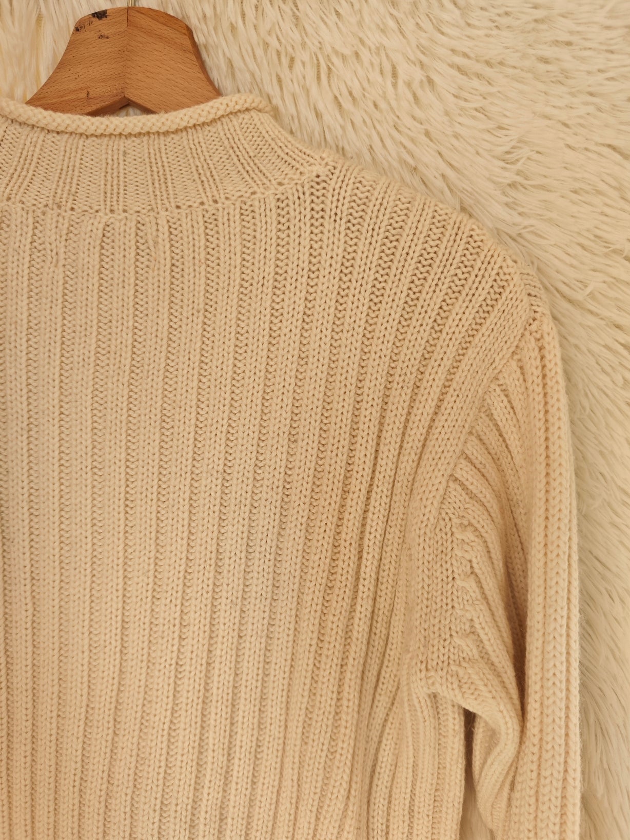 Maglione anni ’90 in morbida maglia color panna con lavorazione a trecce.