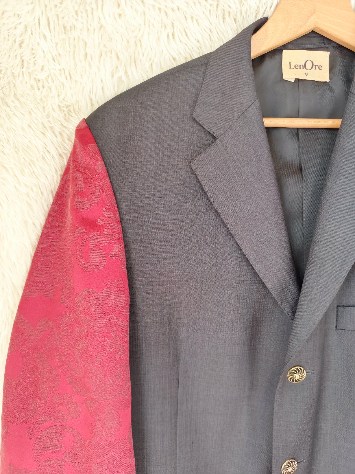 Blazer vintage nero antracite chiusura monopetto, upcycling sartoriale.