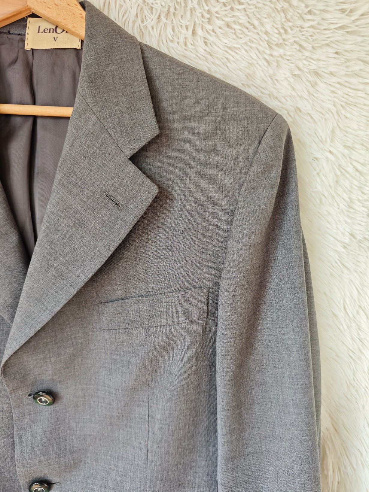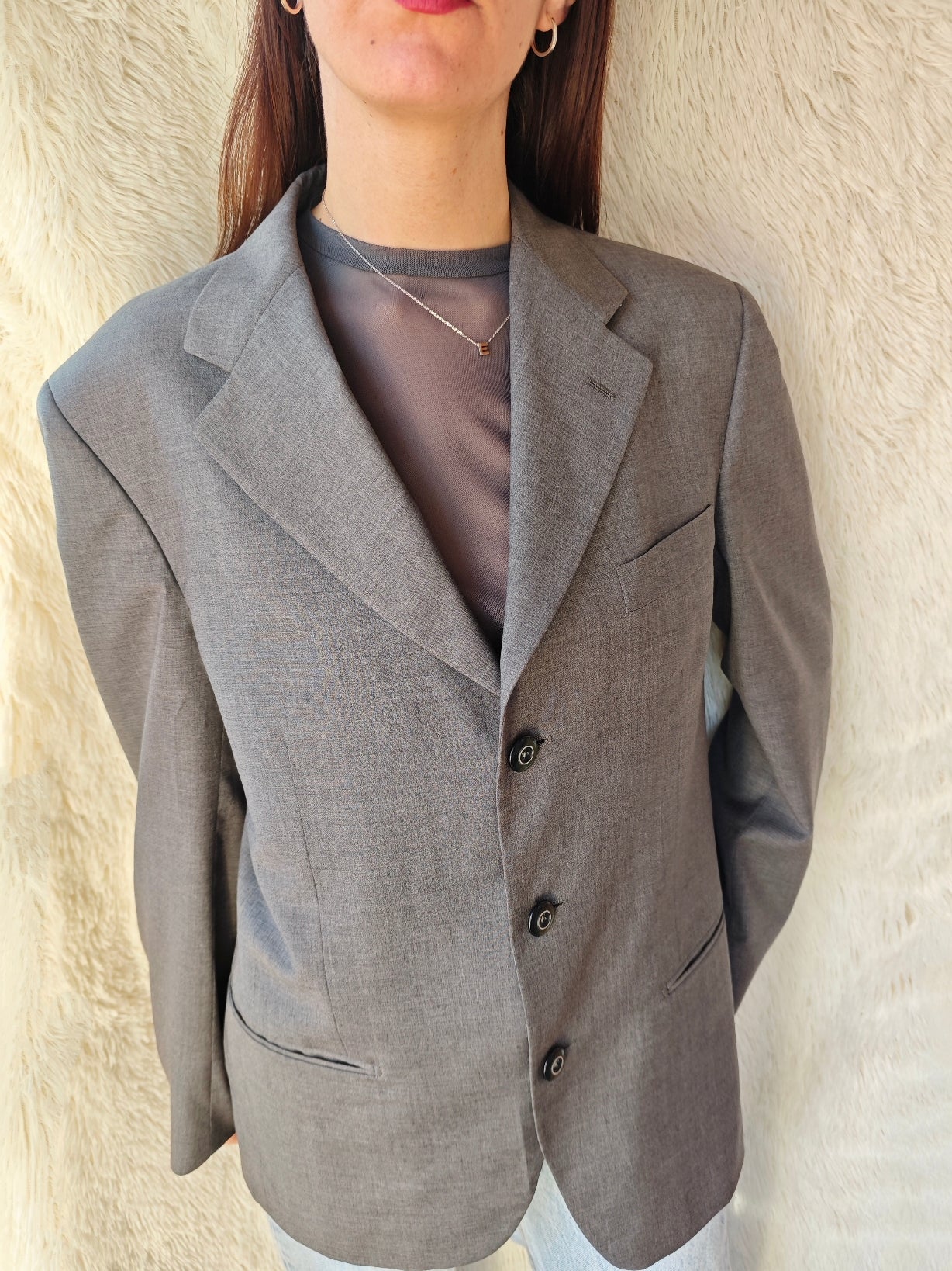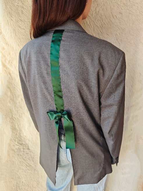 Blazer vintage in grigio medio freddo, upcycling sartoriale.