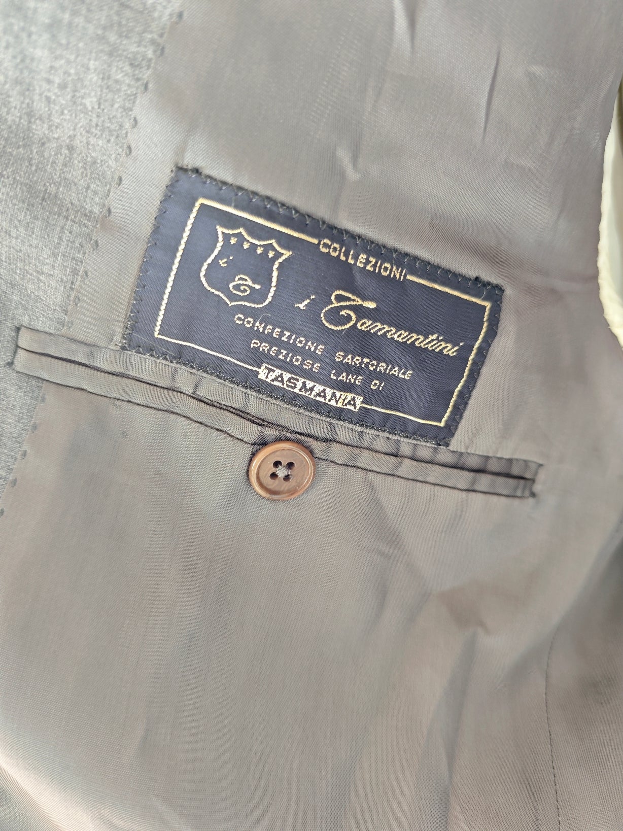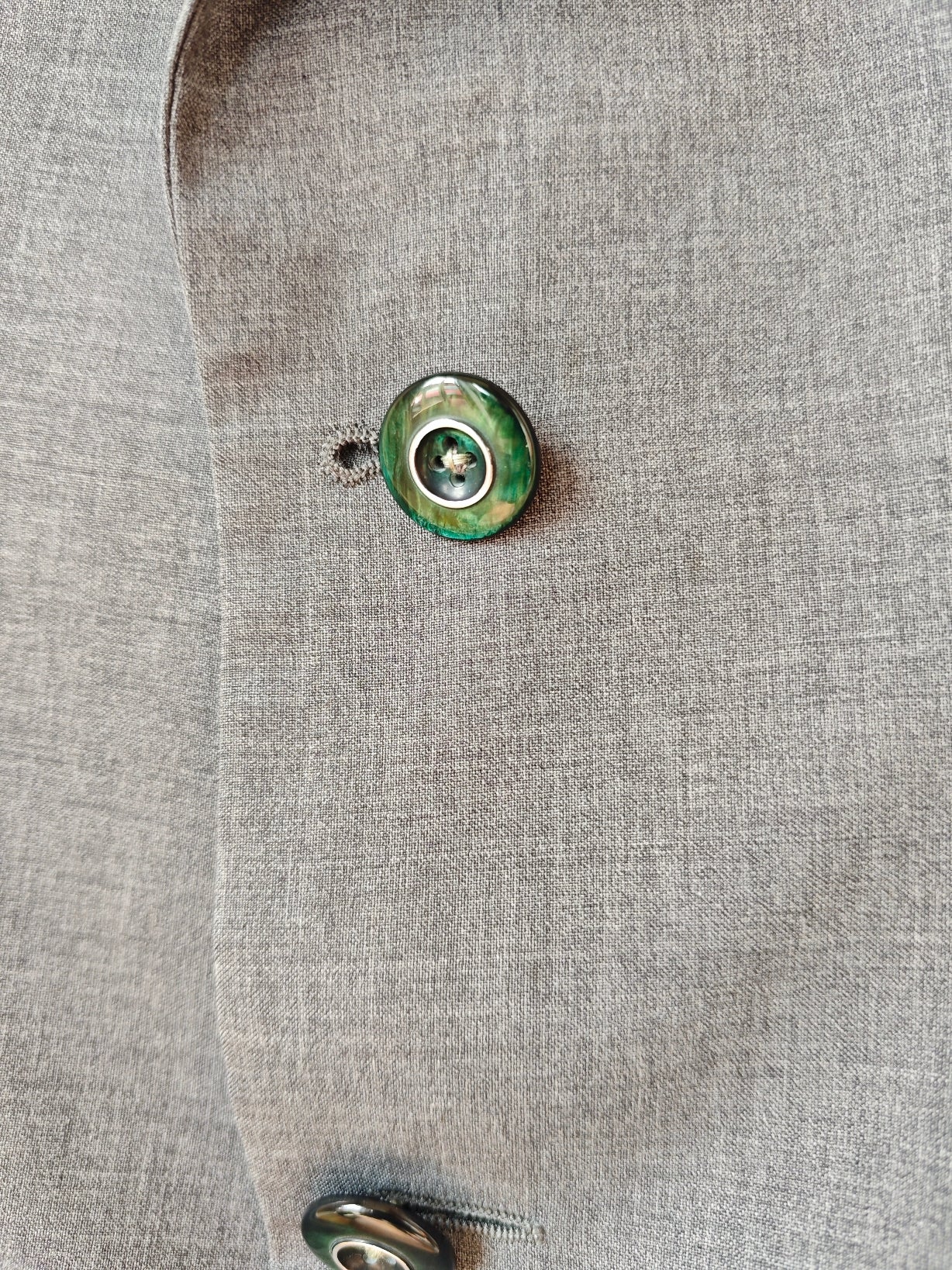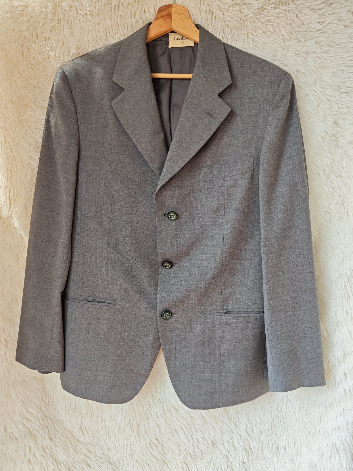 Blazer vintage in grigio medio freddo, upcycling sartoriale.
